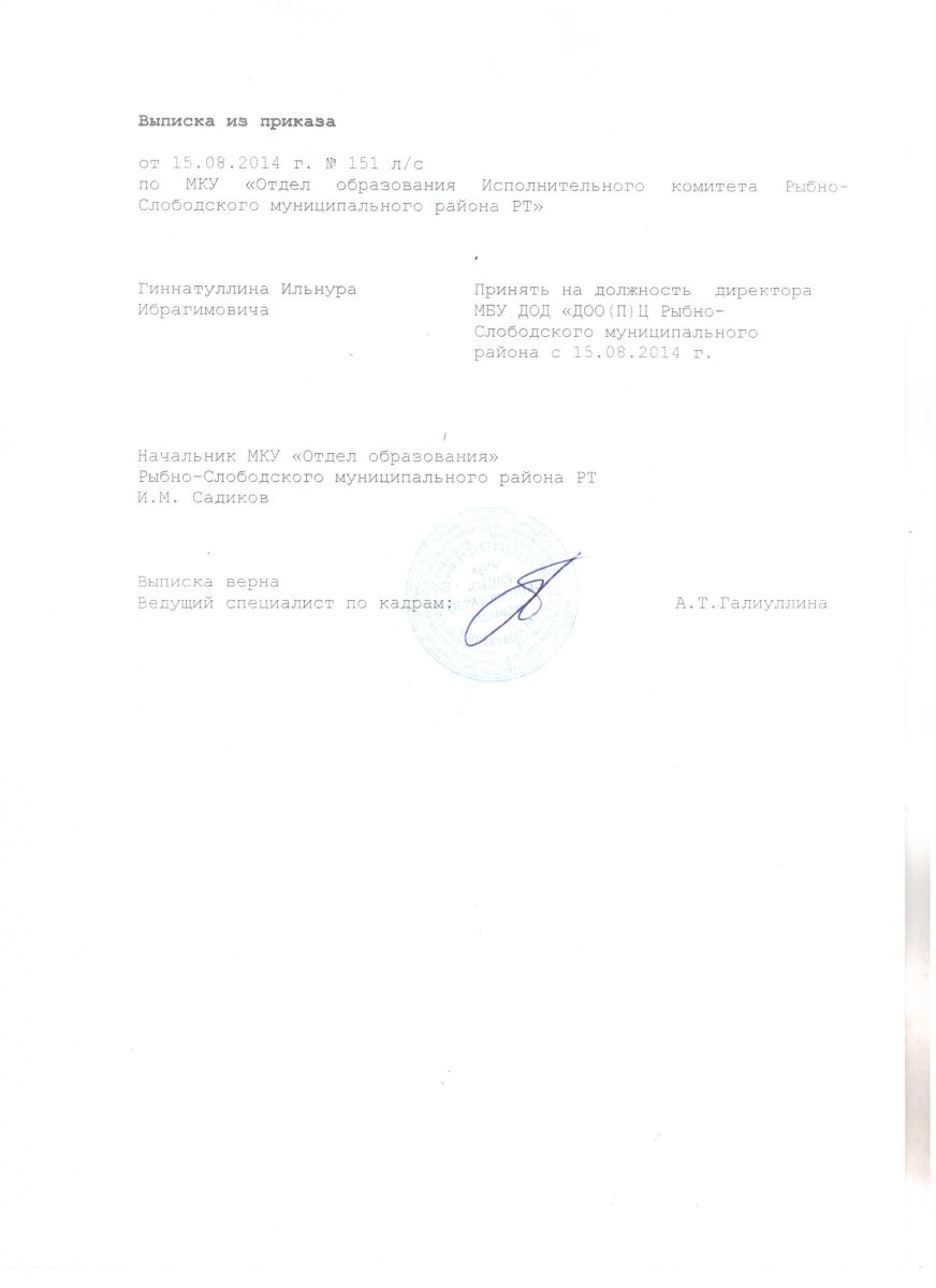 Выписка из приказа о назначении директора