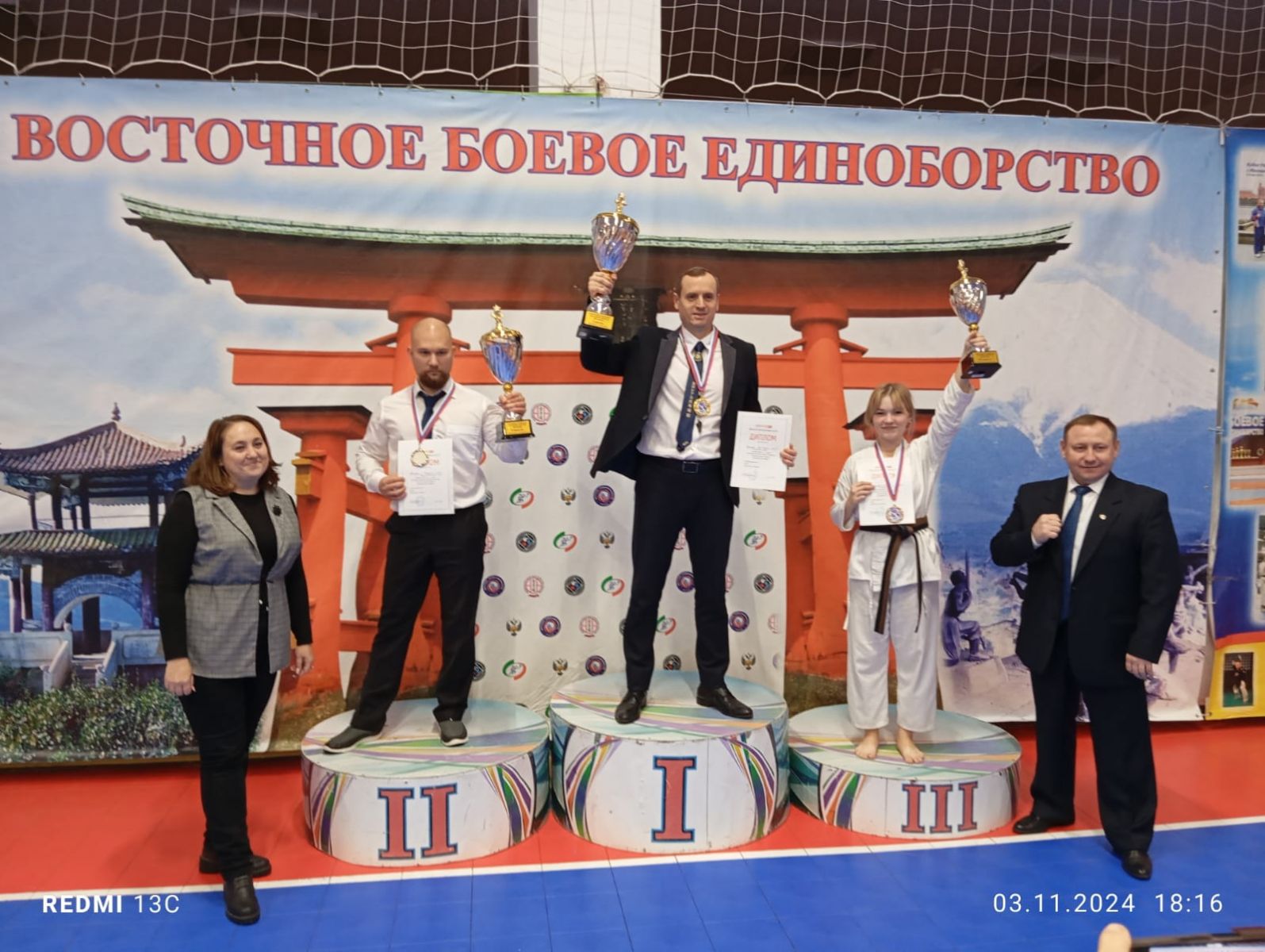 Опубликовано: 05.11.20243 ноября 2024 года проходил Чемпионат и Первенство Республики Татарстан по Восточному боевому единоборству дисциплина КОБУДО. Команда МБУ ДО "ДОО(П)Ц" под руководством педагога дополнительного образования Матвеева Василия Андреевича выступила достойно. Все кто выходил на татами проявили огромную волю к победе и стойкость духа. И это дало свои результаты. В медальном зачёте наша команда завоевала 18 медалей. 5 золотых, 8 серебряных, 5 бронзовых. 1 место завоевали Ахунов Алихан, Безруков Артур, Гарифуллин Рияз, Гиннатуллина Самира, Егоров Тимерлан. 2 место Шакиров Минтимер, Шайхутдинова Раяна, Гизутдинова Замира, Фарзекаев Самир, Вахонин Алексей, Фарзекаев Рузаль, Марасова Влада, Шакиров Минтимер, 3 место Каримова Малика, Ахунова Азалия, Минвалеев Карим, Саляхов Карим, Валеев Ратмир. В общекомандном зачёте наша команда заняла 2 место, уступив только Набережным Челнам. Поздравляем Всех ребят и желаем дальнейших побед. Огромную благодарность выражаем нашим родителям, что поддерживают наши начинания.