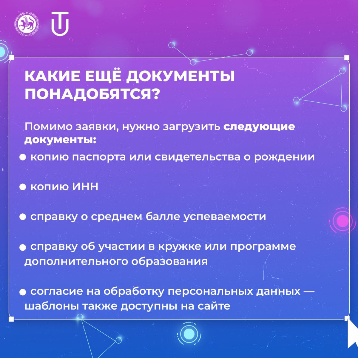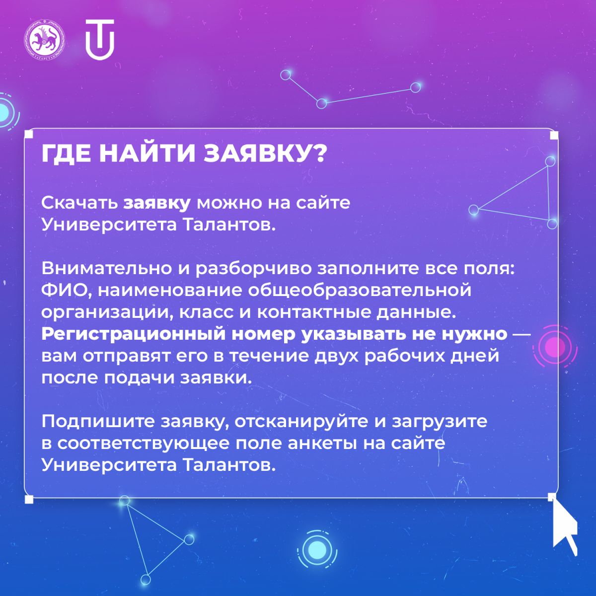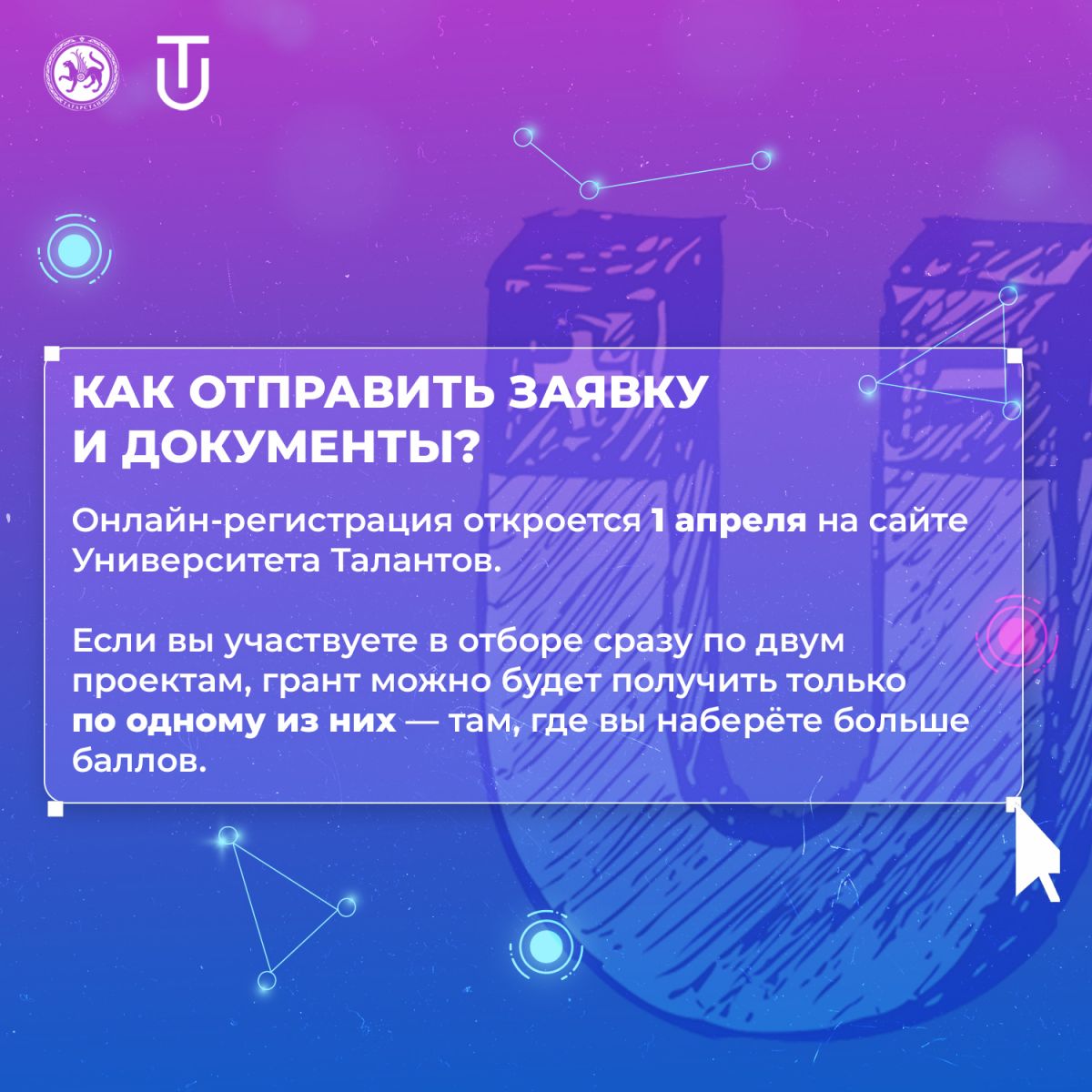 В карточках подробно рассказываем, как заполнить заявку, а также какие документы и достижения нужно прикрепить.