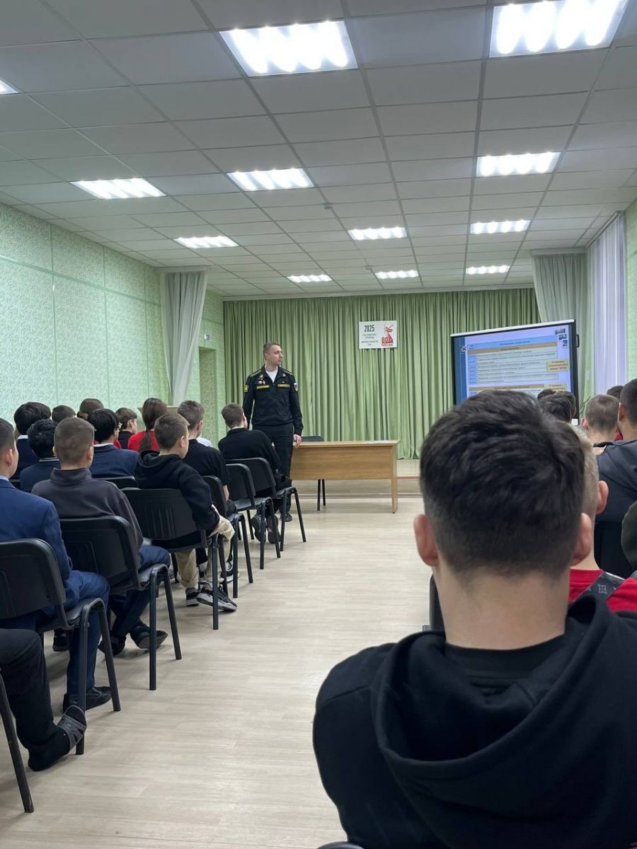 Опубликовано: 15.11.2025Обучающиеся- юноши 8 классов центральных образовательных учреждений п. г. т Рыбная Слобода и обучающиеся ГАПОУ " Рыбно- Слободский агротехнический техникум" приняли участие в профориентационной встрече с представителями Военно- морской академии
