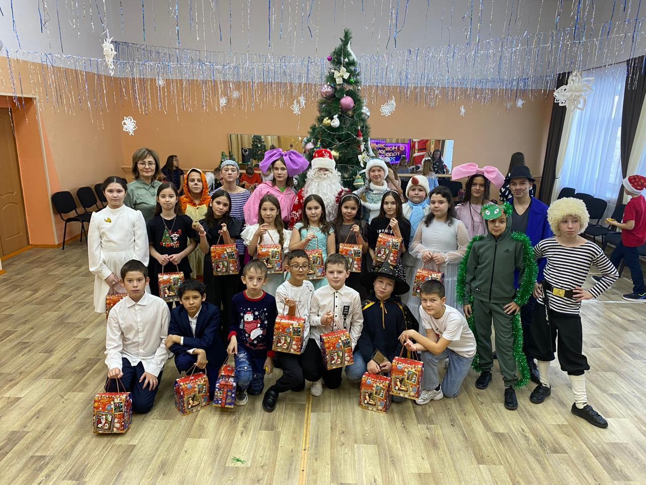 Вместе водили хороводы, играли в различные игры, устраивали танцевальные баттлы и хором пели новогодние песни! Герои загадывали детям загадки и предлагали выполнить активные задания, за что награждали их вкусными По традиции, в завершении представления, Дед мороз распахнул свой мешок с подарками и торжественно раздал их каждому школьнику. От яркого праздника дети получили массу позитивных эмоций на будущий год!Яңа ел алдыннан безнең мәктәптә башлангыч мәктәп өчен яңа ел чыршылары узды. Укучылар чыршыга карнавал костюмнары киеп килделәр. Балалар принцесса, ковбойлар, бэтменнар һәм башка әкият геройлары киемнәрендә йөрделәр. Актлар залында аларны зур яңа ел чыршысы көтте, ә балаларның күңелен әкият персонажлары: Кыш Бабай, Кар кызы, Кар бабай, Мила һәм Лила көлүләре, пиратлар белән Бармалей көтте. Бергә әйлән-бәйлән уйнадык, төрле уеннар уйнадык, бию баттллары оештырдык һәм хор белән Яңа ел җырларын җырладык!