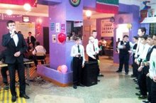 Утром, прямо в фойе школы оригинальной идеей поздравления стала песня «Эх сез матур кызлар!» в исполнении Хабибуллина Булата.