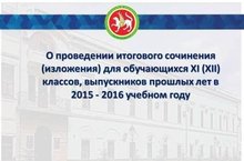 О проведении итогового сочинения (изложения) для обучающихся XI (XII) классов, выпускников прошлых лет в 2015 - 2016 учебном году 20.11.2015