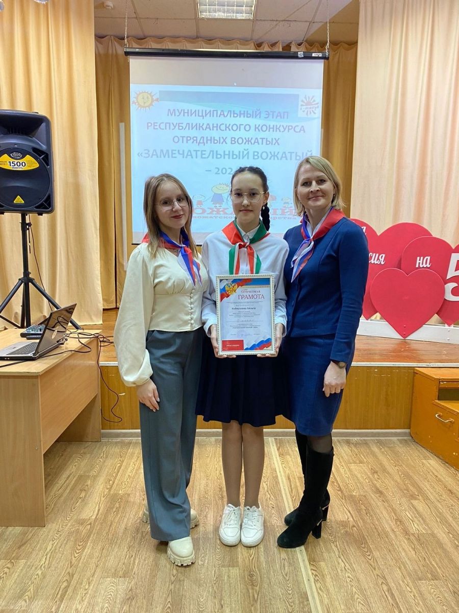 28 февраля в Центре Детского Творчества прошёл муниципальный этап Республиканского конкурса "Замечательный вожатый", в котором приняла участие ученица 8 Б класса Набиуллина Айсылу. Руководитель: Николаева Марина Анатольевна. В результате успешного выступления Айсылу заняла почётное 3 место! Поздравляем!!! Желаем дальнейших успехов и побед!!!