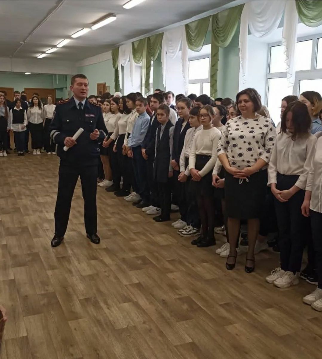 В начале линейки была проведена беседа с начальником отдела ГИБДД отдела МВД России по Рыбно-Слободскому району Шигаповым И.З.