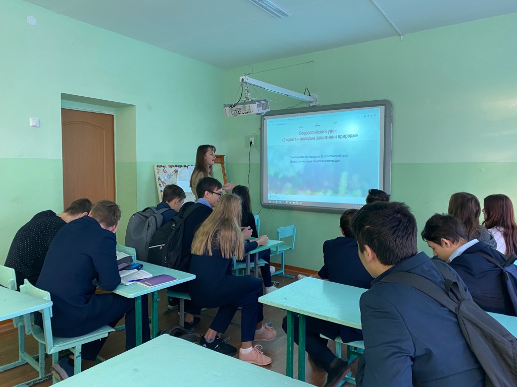 Бүген безнең мәктәптә «Экологлар - табигатьне саклаучы яшьләр» дигән әйләнә-тирәлеккә сак һәм җаваплы караш формалаштыруга юнәлтелгән Бөтенроссия дәресе узды.