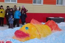 Но однажды: шли ребята утром в школу, а попали в сказочное зимнее царство. От ели к ели разливается разноцветным красками сказочный дождь. Яблони школьного сада утопают в свете волшебных огней. А вдоль дорожек стоят снежные жители. Пожаловали с полей, из лесов, со дна глубоких морей. Увидали, застыли на месте от такой небывалой красоты, да так и остались стоять в оцепенении. А в центре двора своей статью красуется Печка-матушка. Хитро подмигивает печурками, как бы спрашивая у входящих: «А не отведать ли вам моих румяных пирожков, только что с пылу с жару?».