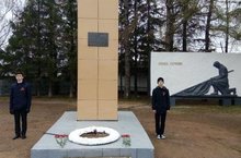 Митинг Памяти прошел торжественно и величественно. Старшеклассники возложили Венок Славы к подножию памятника.