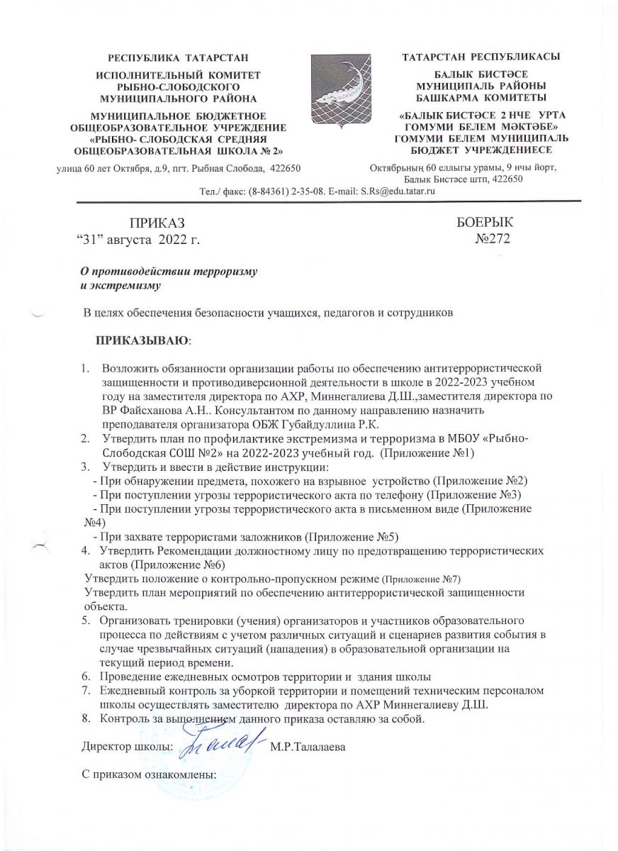 МБОУ «Рыбно-Слободская средняя общеобразовательная школа №2» Рыбно-Слободского муниципального района РТ / Татарстан Республикасы Балык Бистәсе муниципаль районы “ Балык Бистәсе 2 нче урта гомуми белем бирү мәктәбе” муниципаль бюджет гомуми белем бирү учреждениесе
