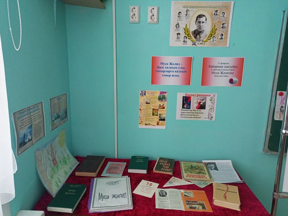 13 февраля 1 этаж школы был наполнен звучанием песен и стихов М.Джалиля. Там же учащиеся имели возможность ознакомиться с выстовкой книг поэта. Весь день, на каждой перемене был организован просмотр документального фильма о Джалиле.