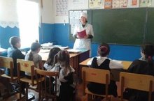 Бүген Таулар авылы фельдшеры Гапдуллазянова Голсем башлангыч сыйныфларга прививка буенча әңгәмә үткәрде.