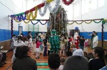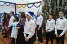 Настоящее новогоднее представление былодля учащихся старших классов. В гости к нам пришли Шапокляк, Баба - Яга, Дед Мороз и Снегурочка. Хотя Шапокляк и готова была делать только плохие дела,но она исправилась и провела отличный новогодний праздник с детьми.