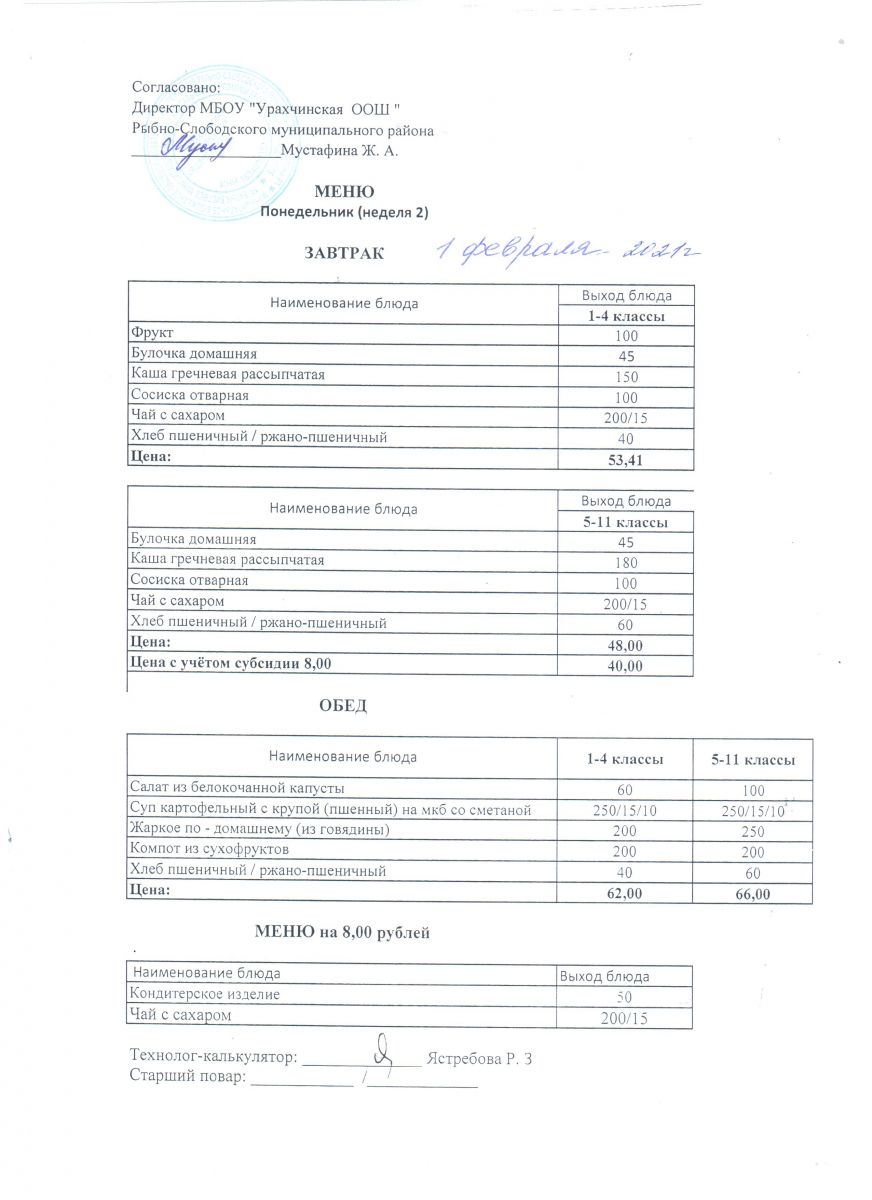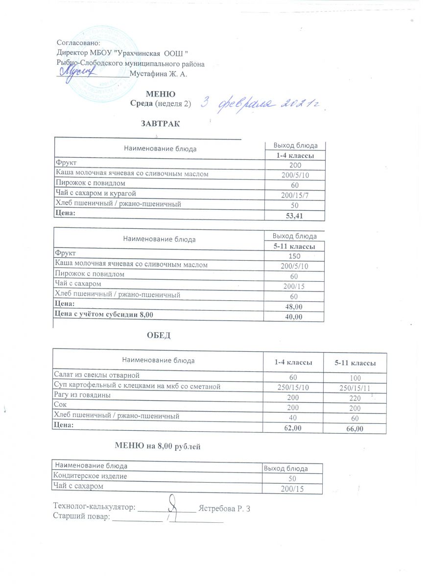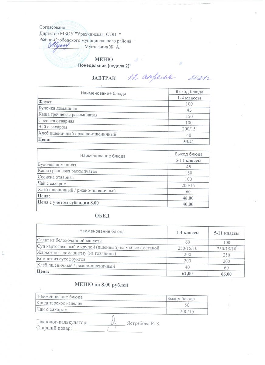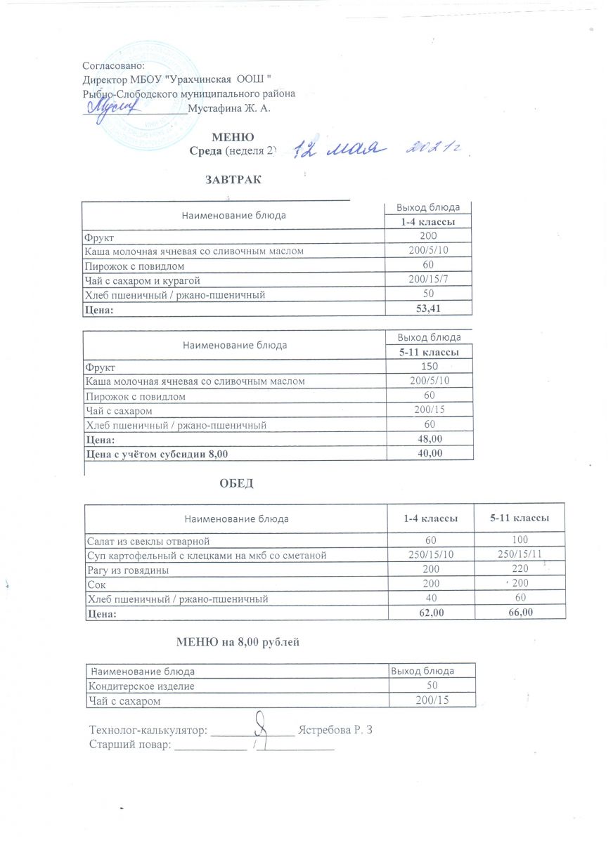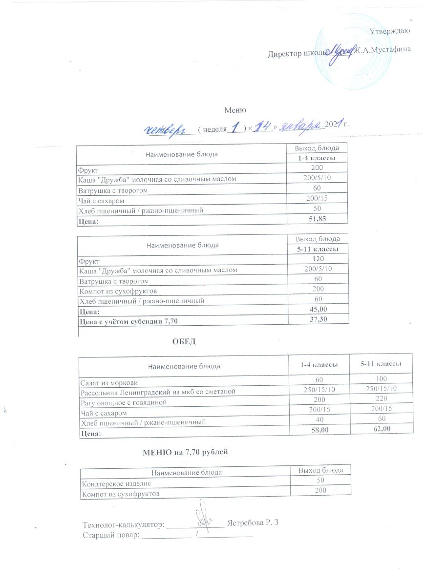 Примерное двухнедельное меню за счет бюджетных средств (9,20)