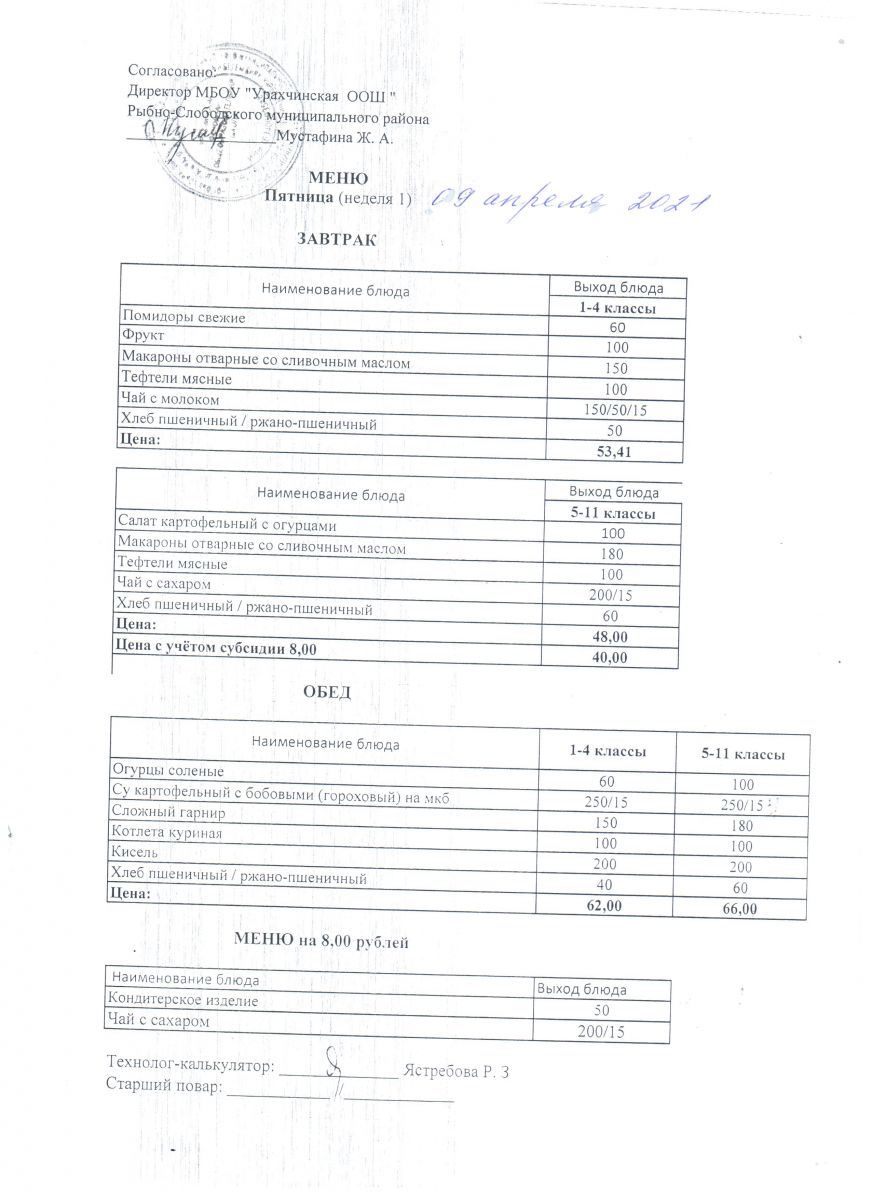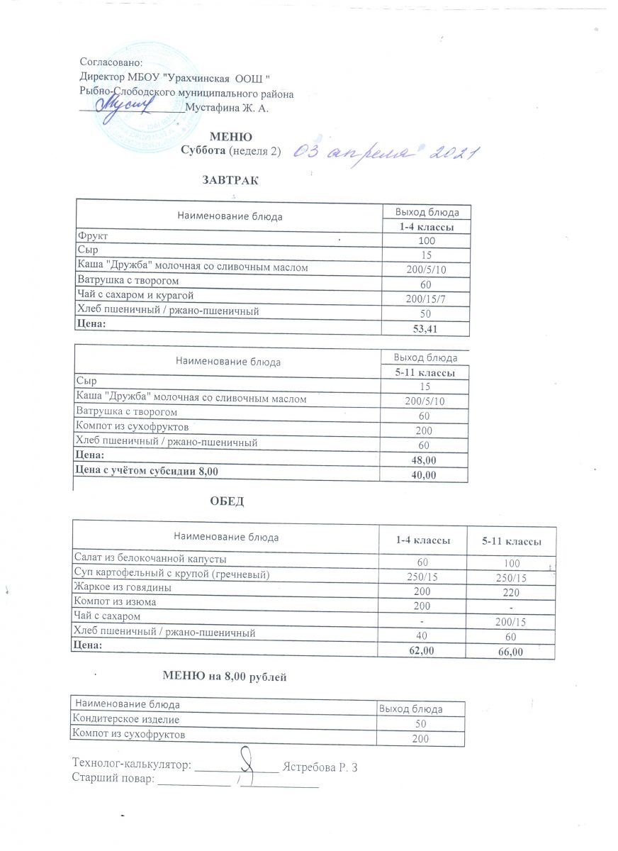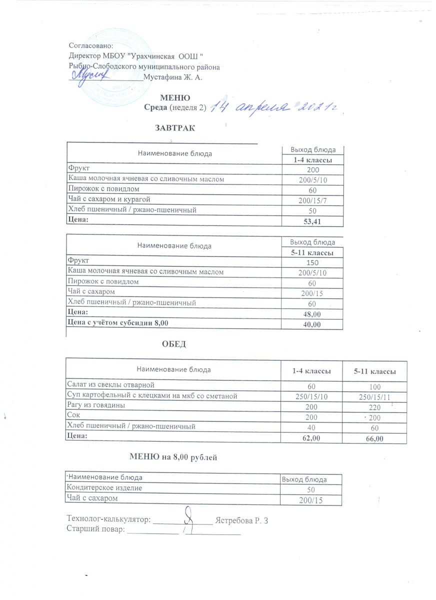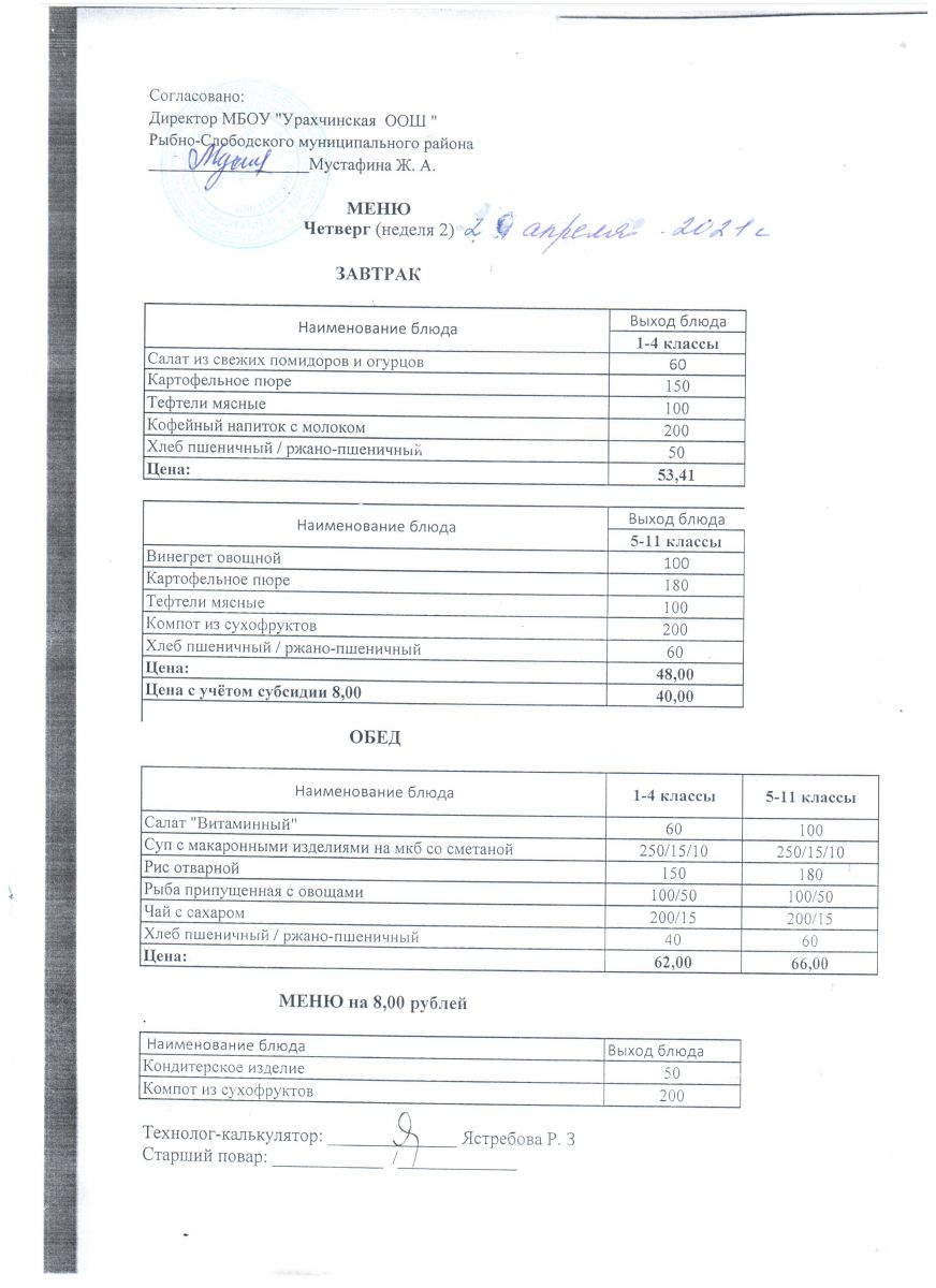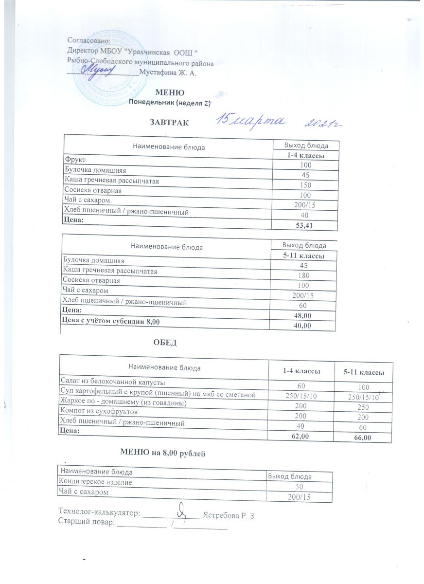 Примерное двухнедельное меню за счет бюджетных средств (9,20)