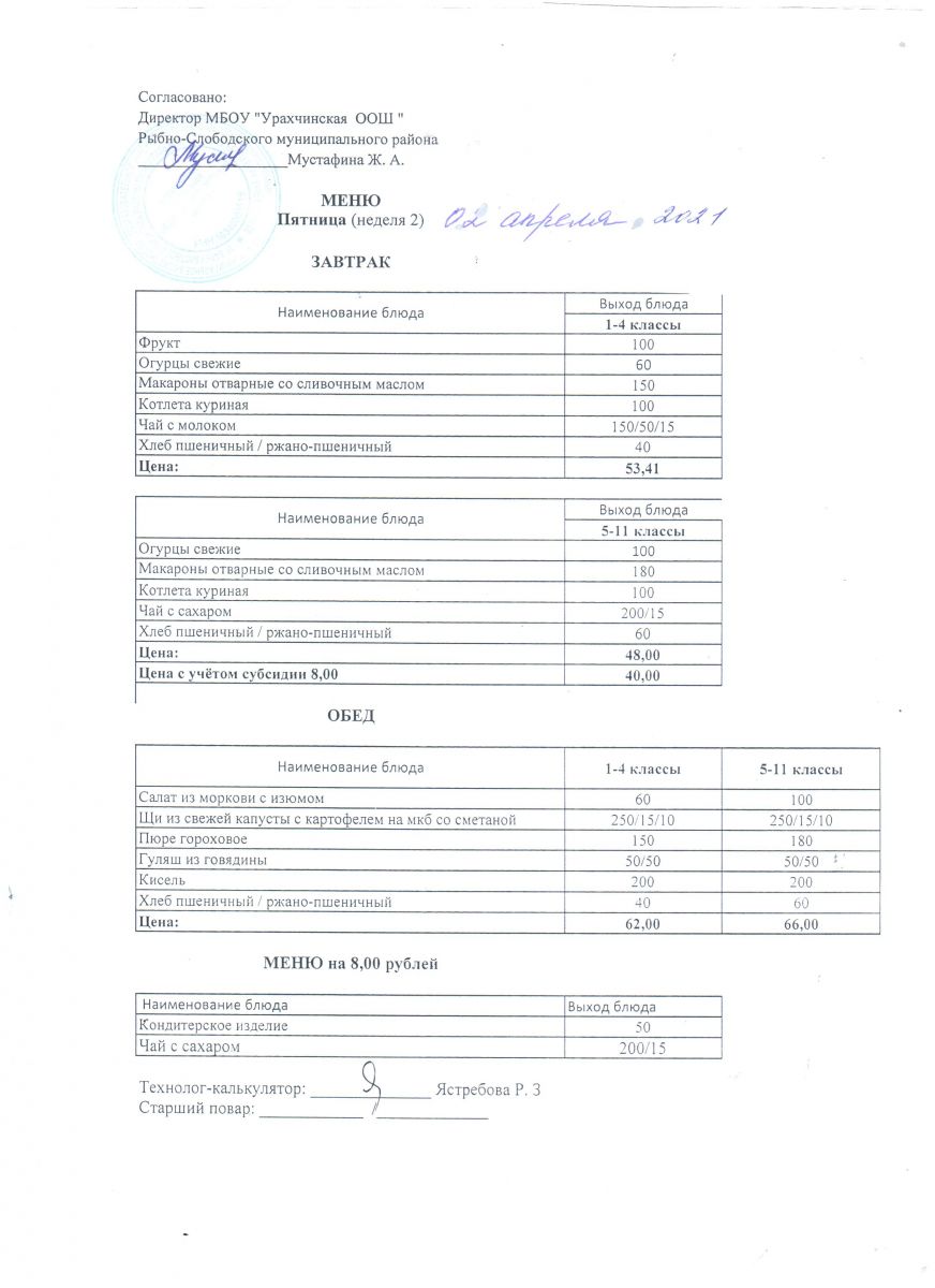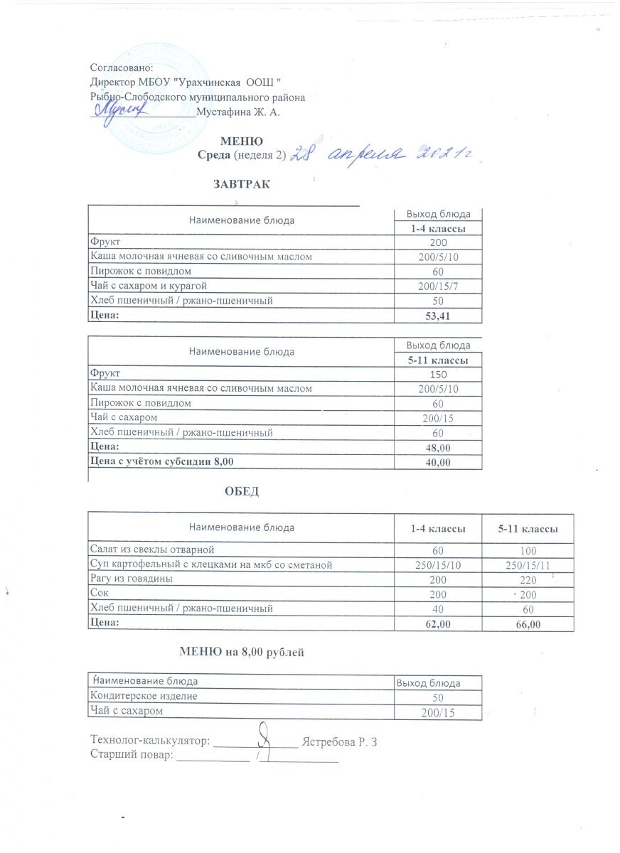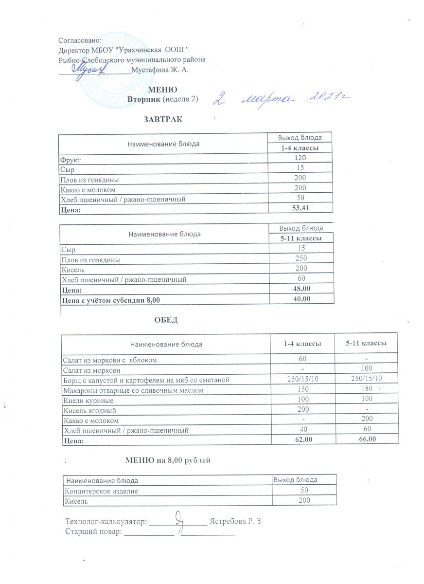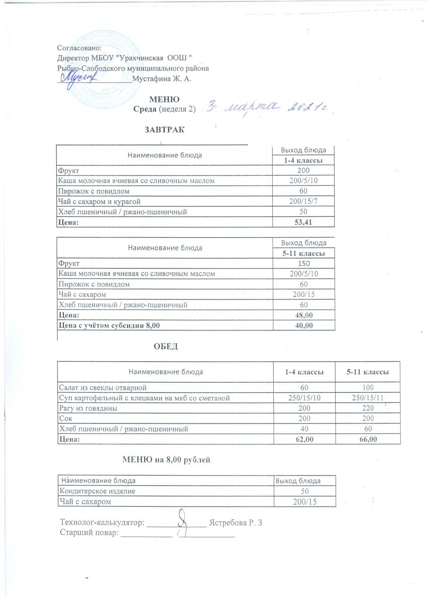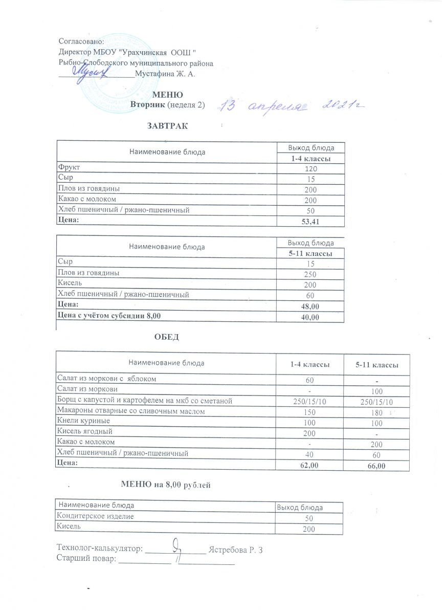 Примерное двухнедельное меню за счет бюджетных средств (9,20)