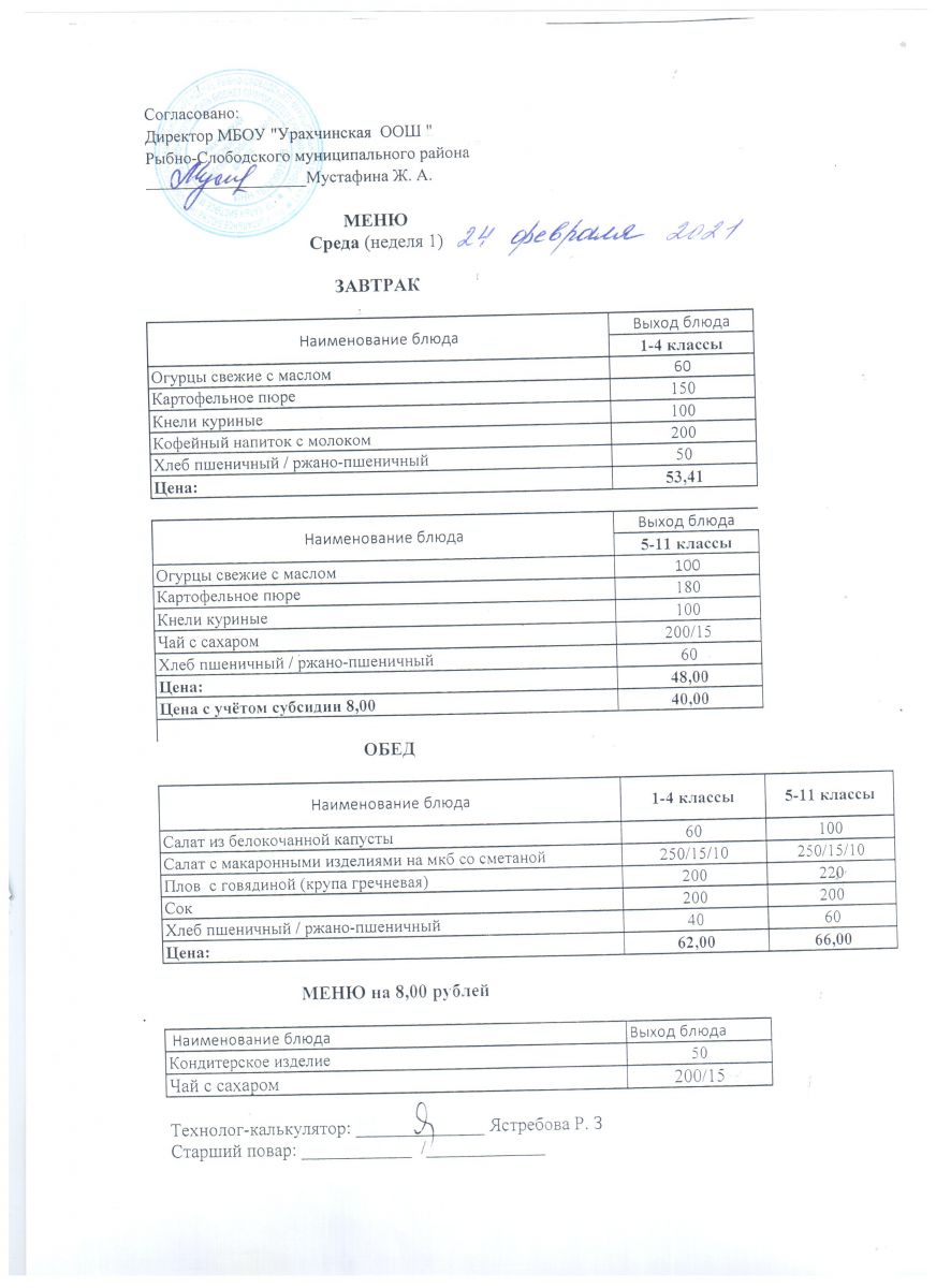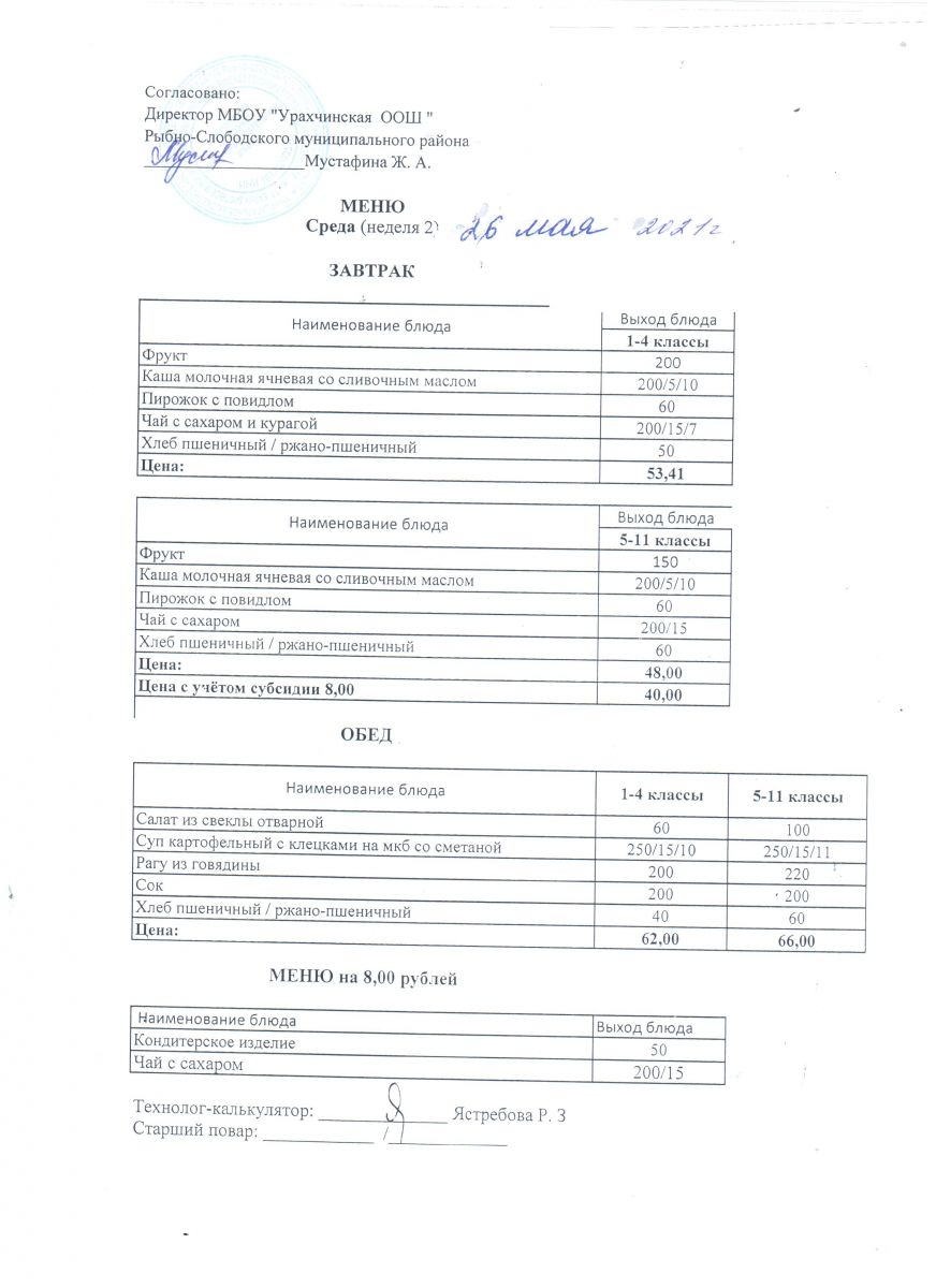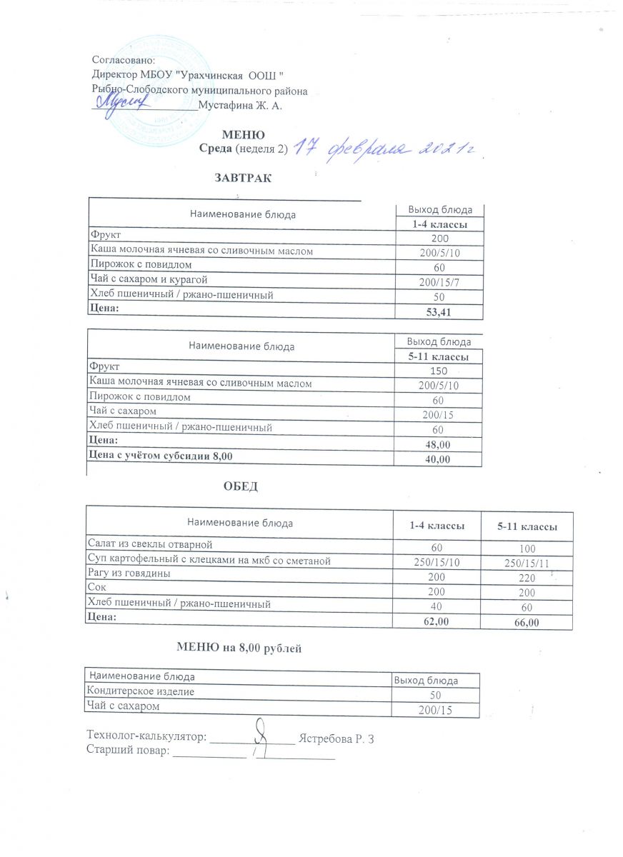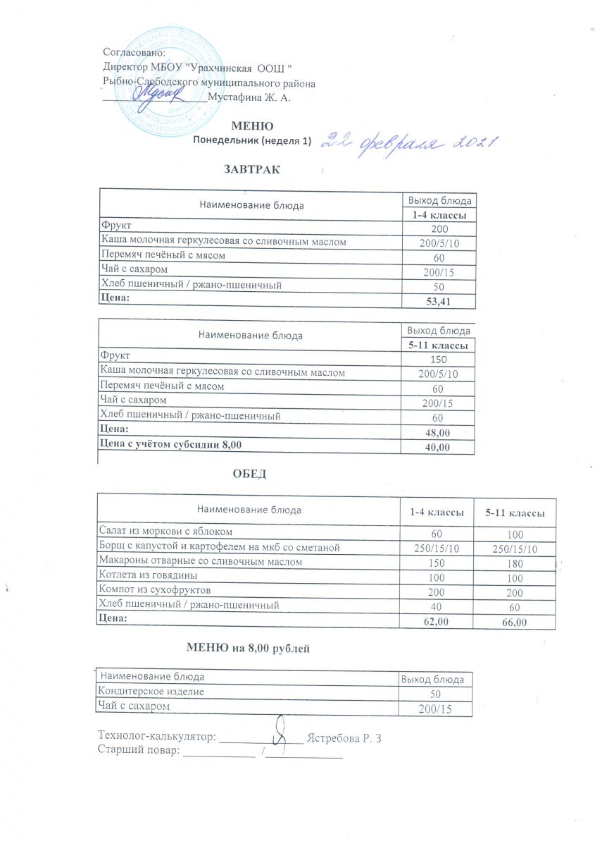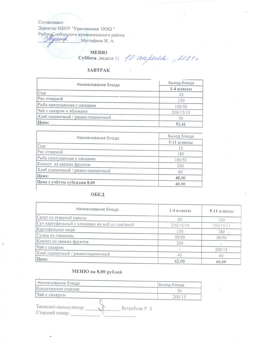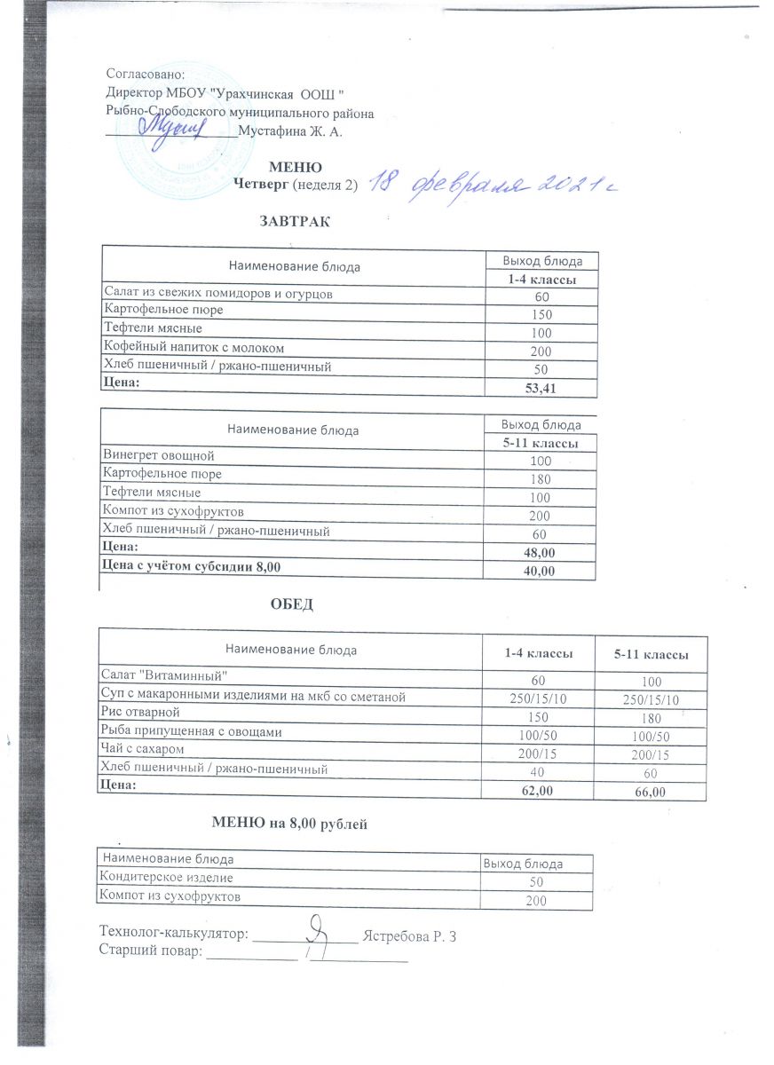 Примерное двухнедельное меню за счет бюджетных средств (9,20)