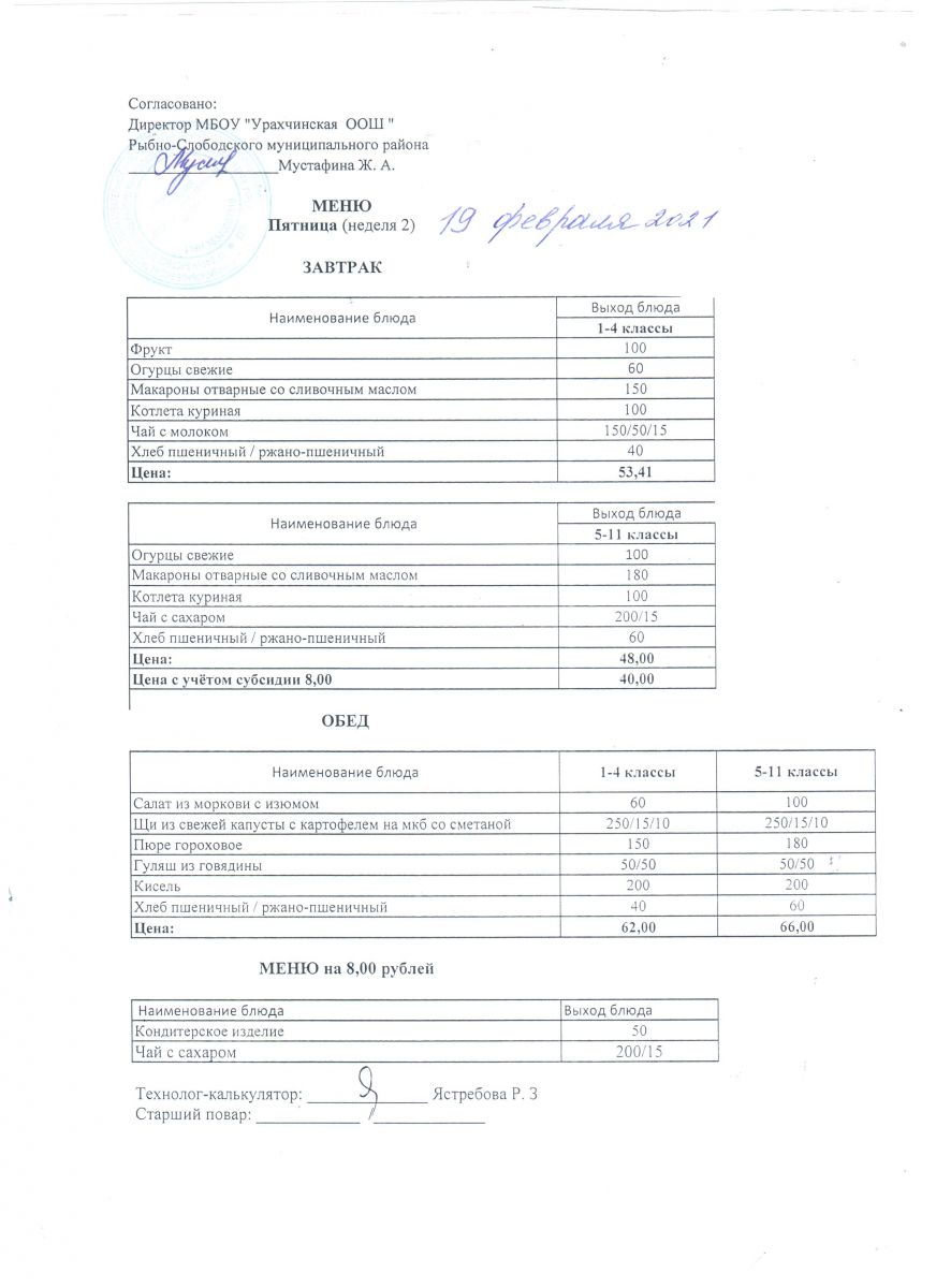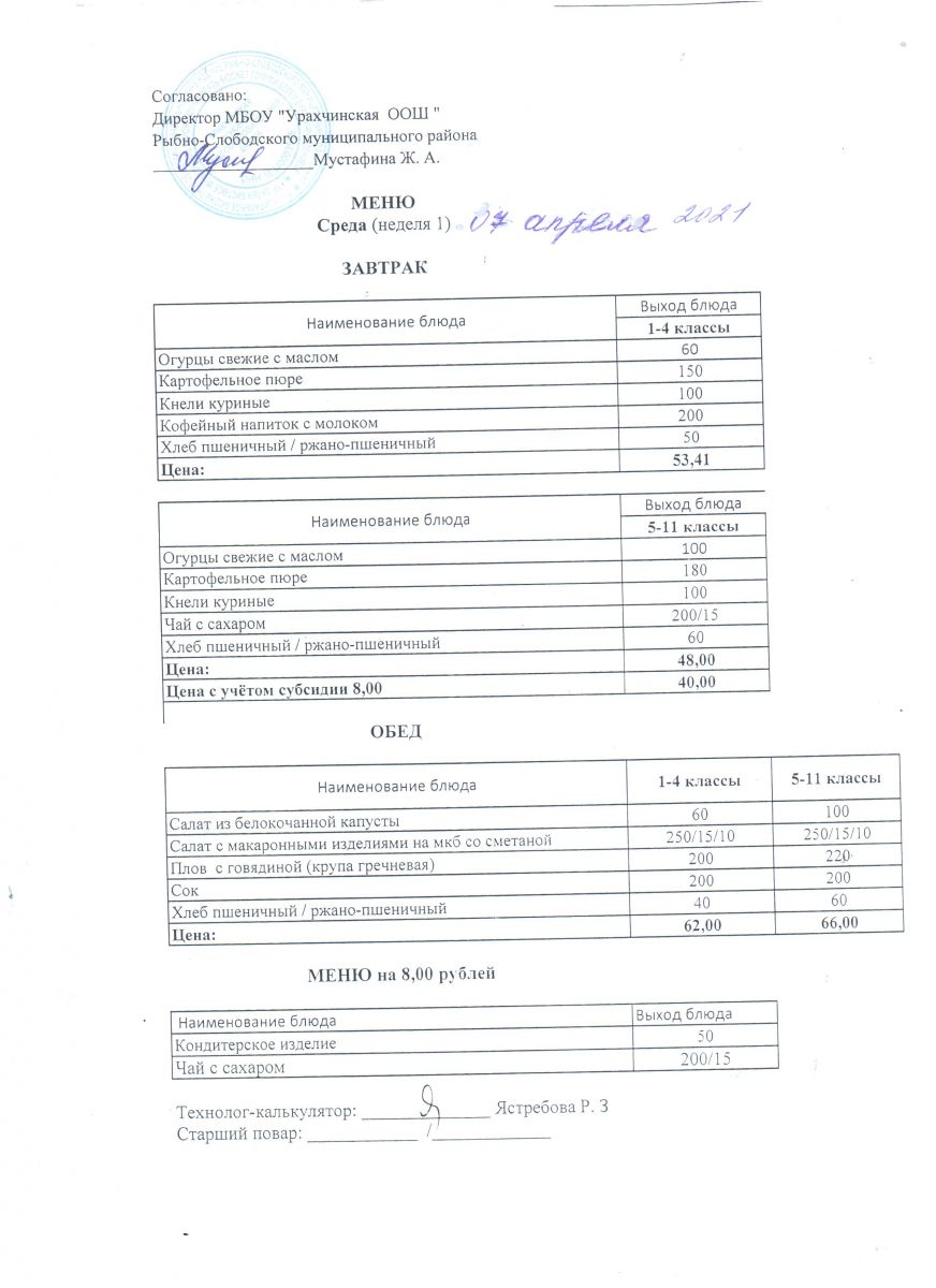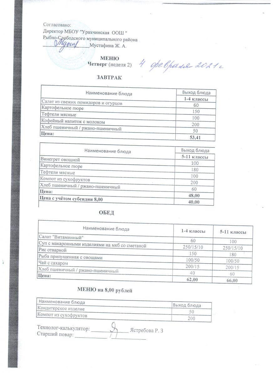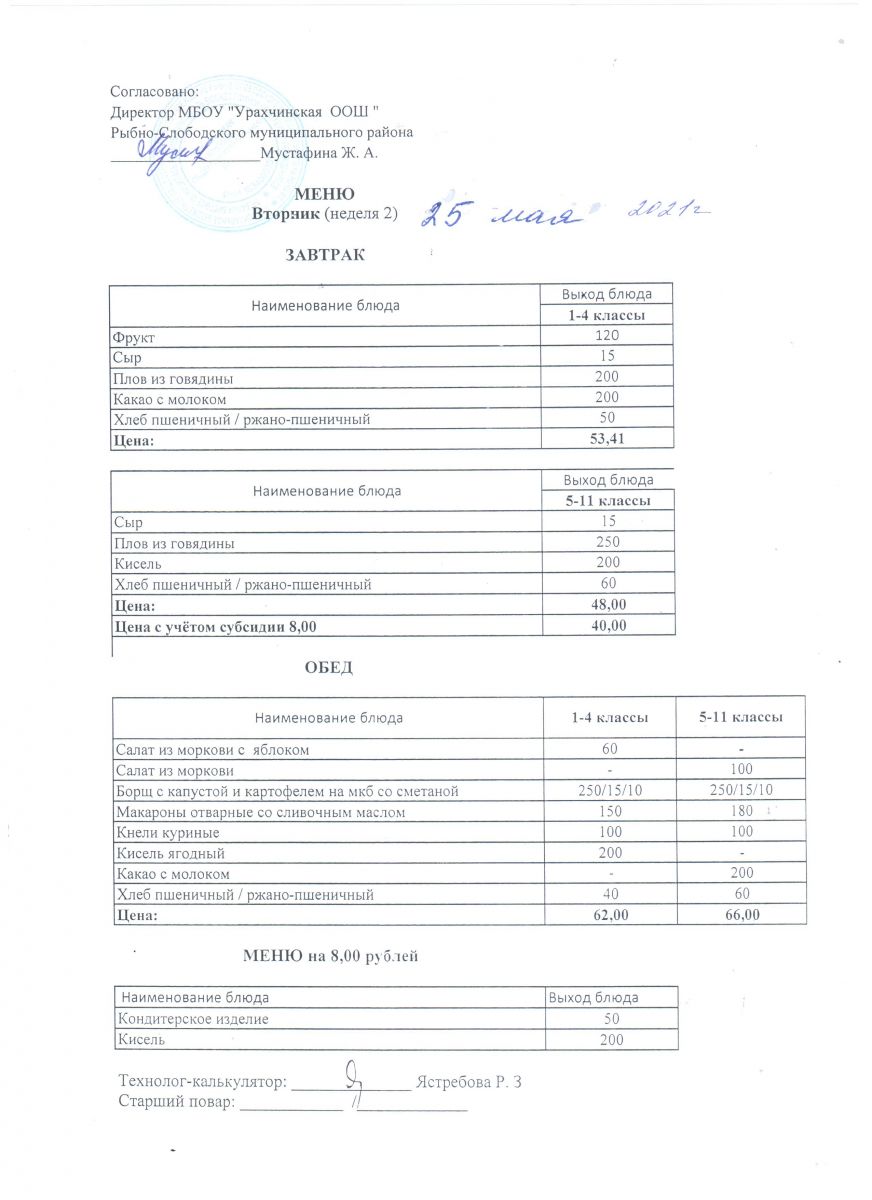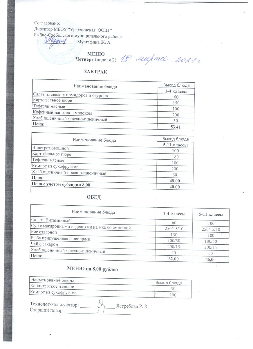 Примерное двухнедельное меню за счет бюджетных средств (9,20)