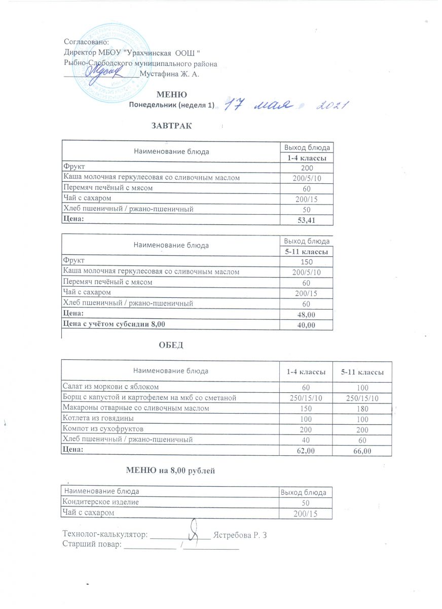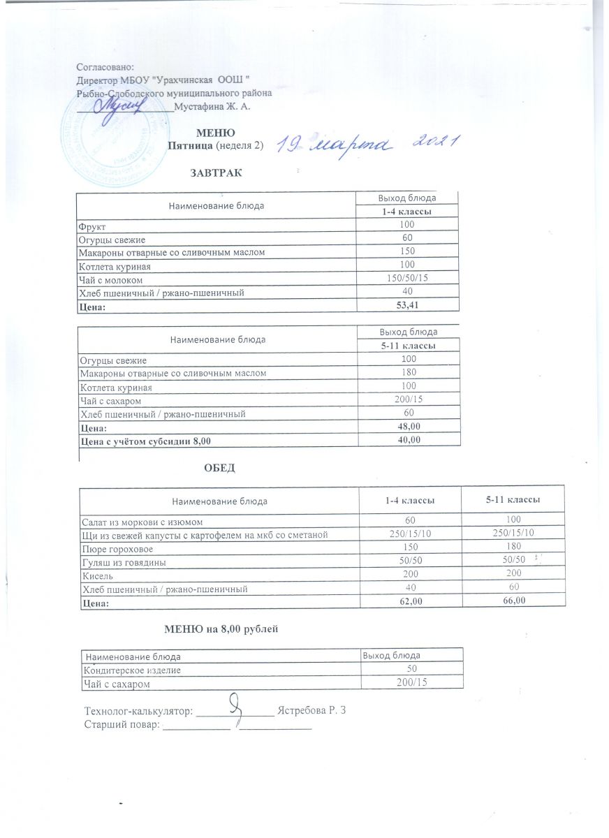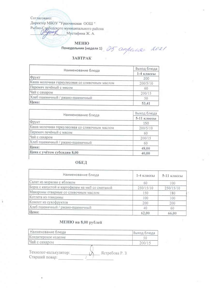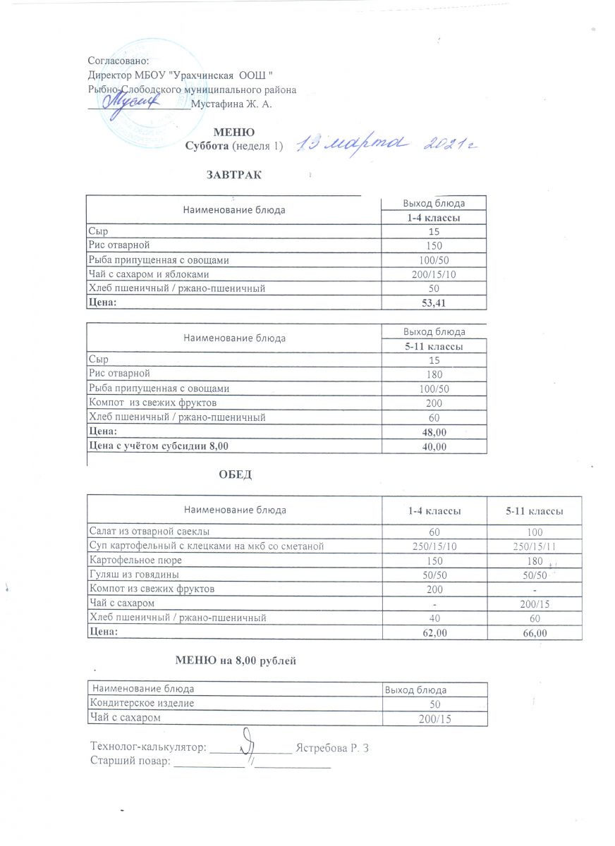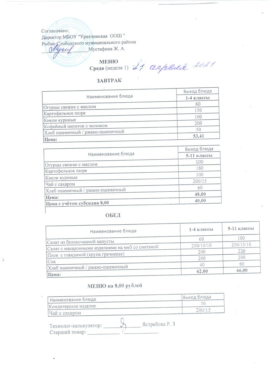 Примерное двухнедельное меню за счет бюджетных средств (9,20)