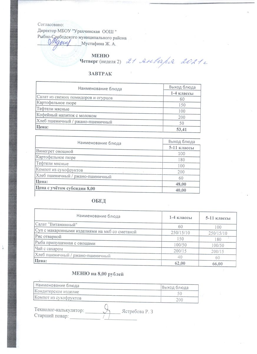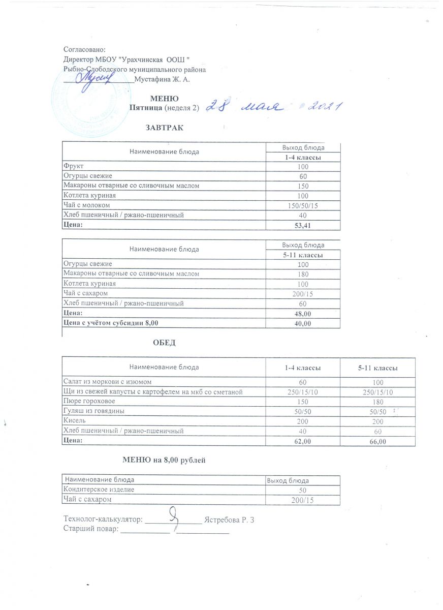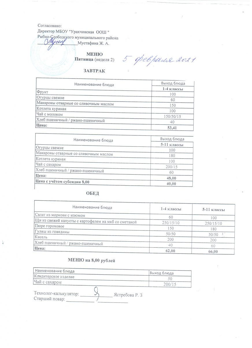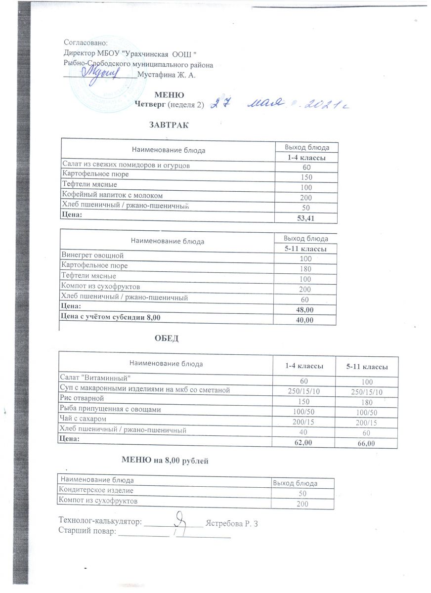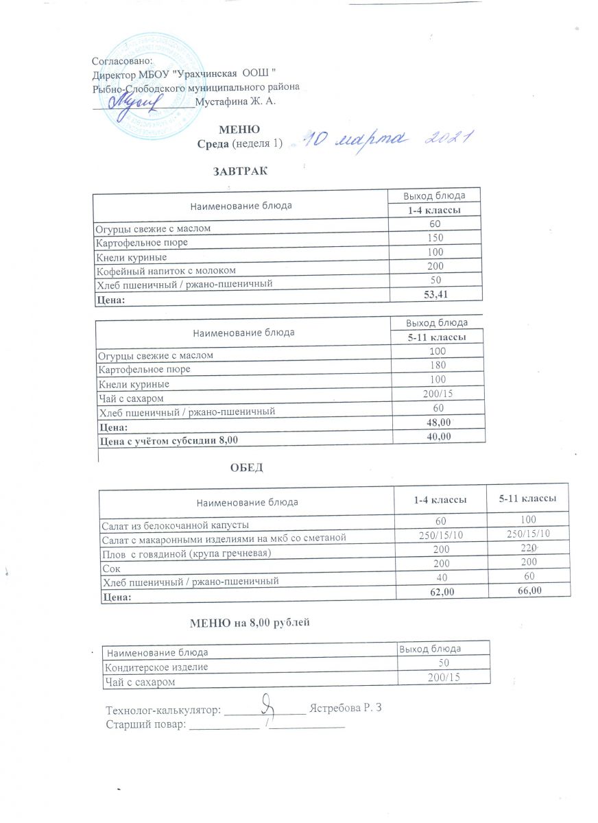 Примерное двухнедельное меню за счет бюджетных средств (9,20)