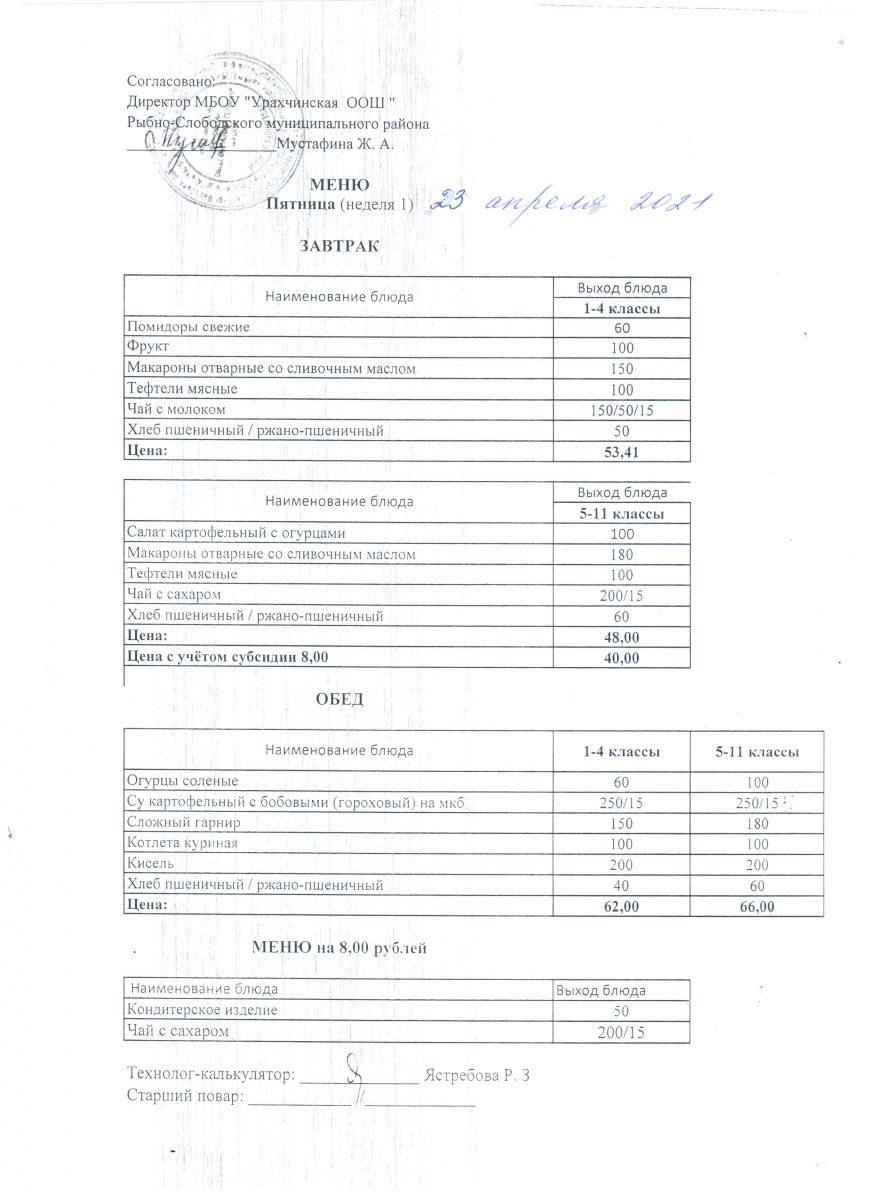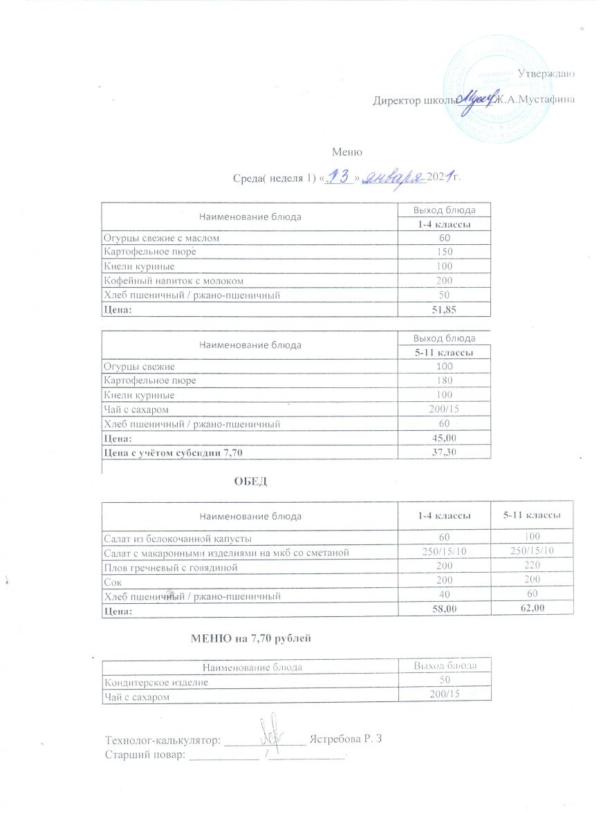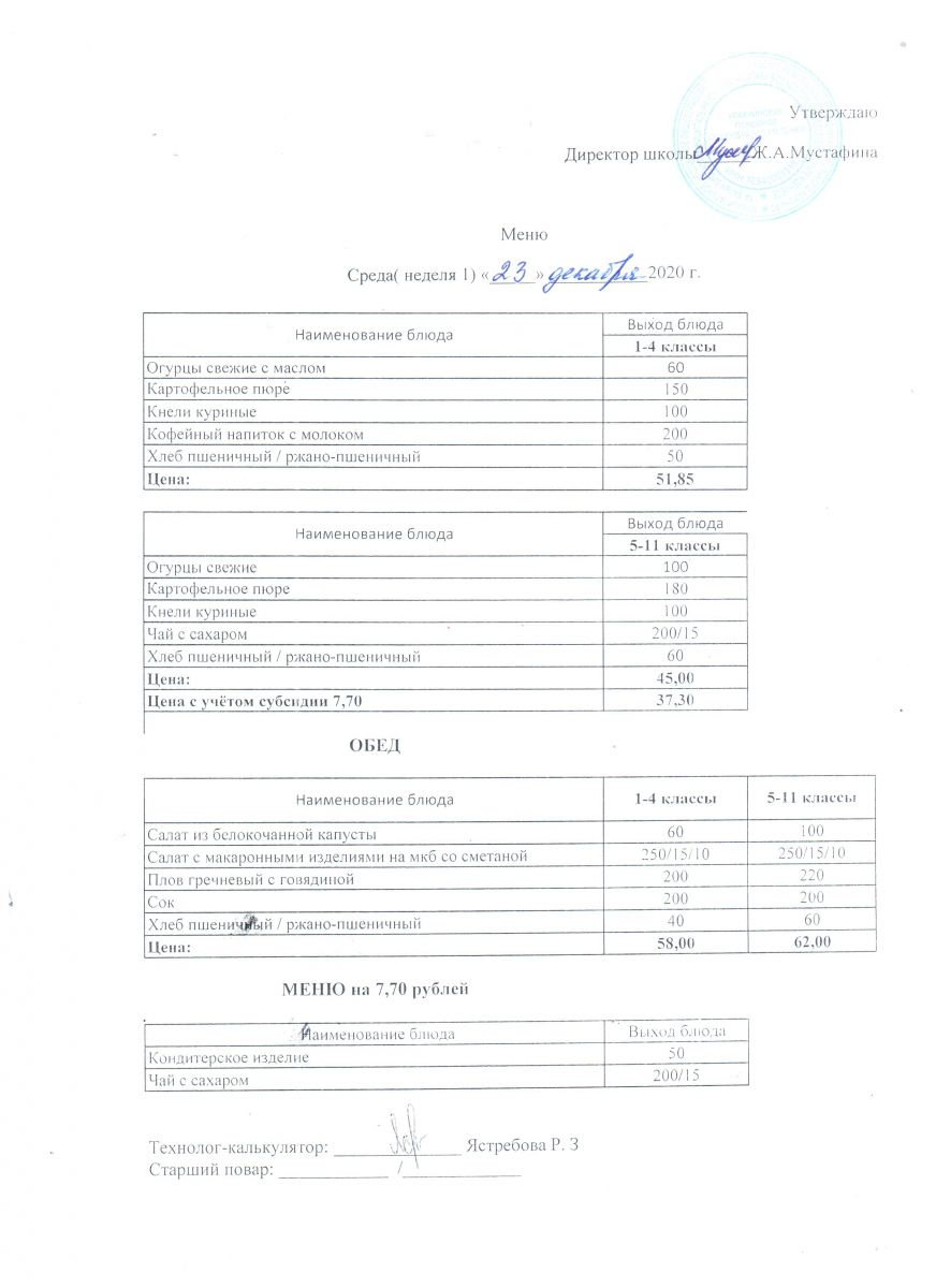 Примерное двенадцатидневное меню на 1 полугодие 2023-2024 учебный год