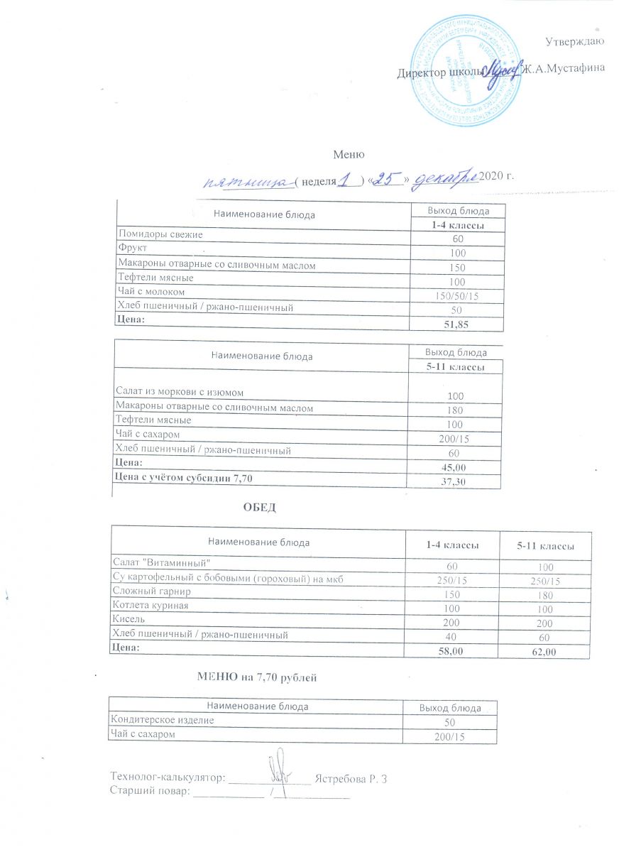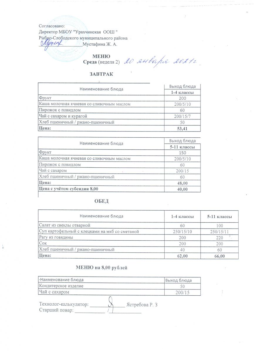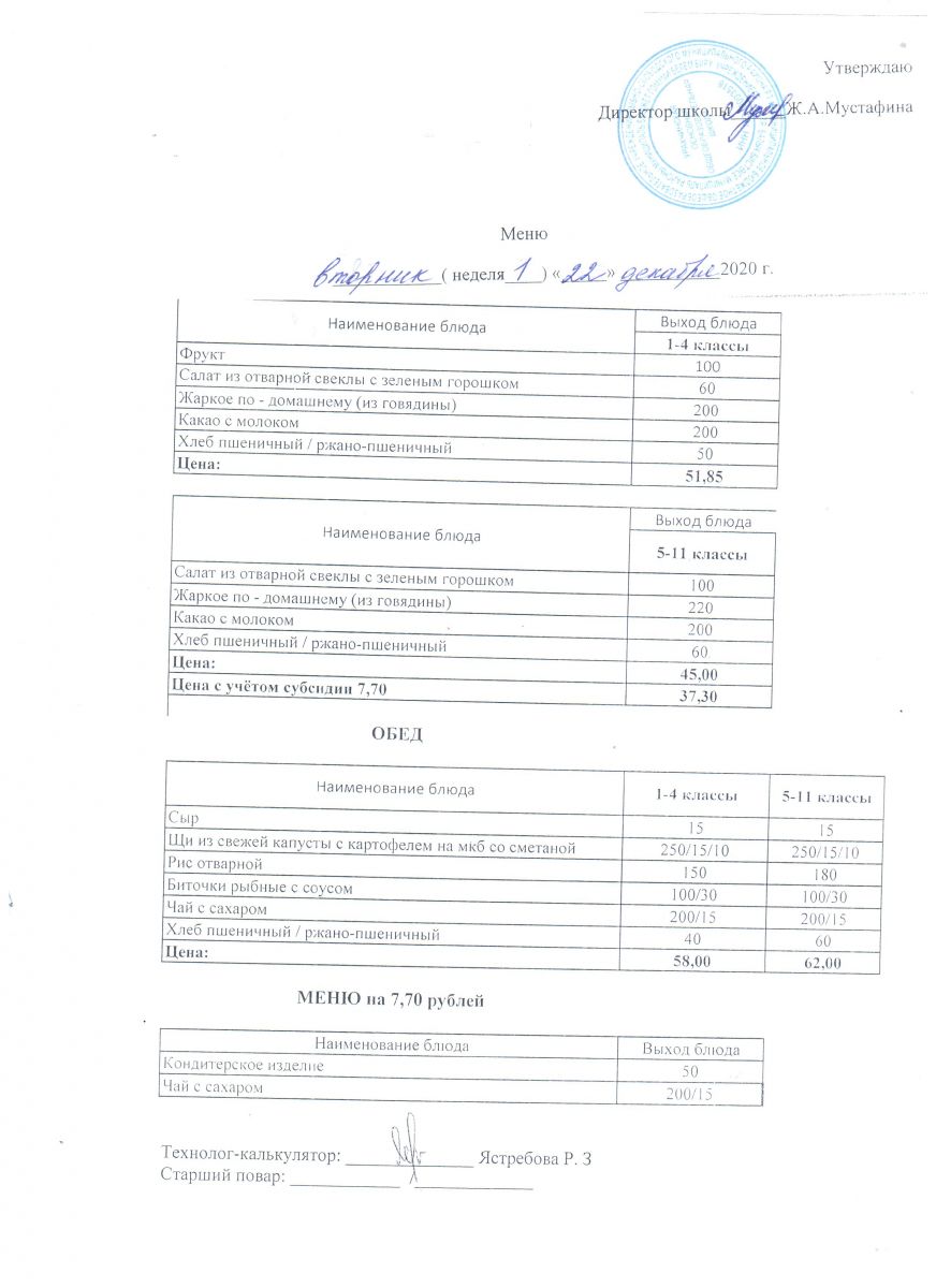 Примерное двенадцатидневное меню на 2020-2021 учебный год