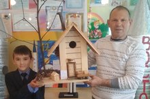Ученик 1 класса Шарипов Расул и ученик 2 класса Шарипов Данис вместе с родителями смастерили сказочные скворечники-домики