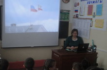 Учеников 1-4 класса ознакомили видиофильмом "Государственные символы Ттатарстана." Провели беседу о государственных символах, о значении слов "флаг","герб","гимн" .