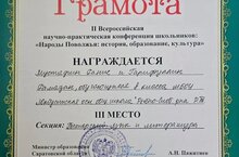 14 февраль көнне 8 сыйныф укучылары Мостафин Рәнис һәм Гарифуллин Рамазан (җитәкчеләре Каримуллин Ф.Г., Каримуллина И.И.) укучыларның II нче Бөтенроссия “Идел буе халыклары : тарих, мәгариф, мәдәният” конференциясендә катнашып III призлы урынны яуладылар. Әфәрин, укучылар!