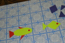 Математика шөгылендә балалар кунакка килгән песине сыйлау өчен геометрик фигуралардан балык ясадылар