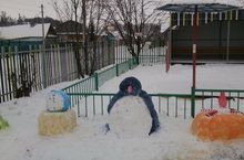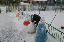 Балалар бакчасында эш бөтен көченә бара!Бакча территориясен матурлау, балалар бакчага теләп килү максатыннан кар сыннары ясыйбыз.