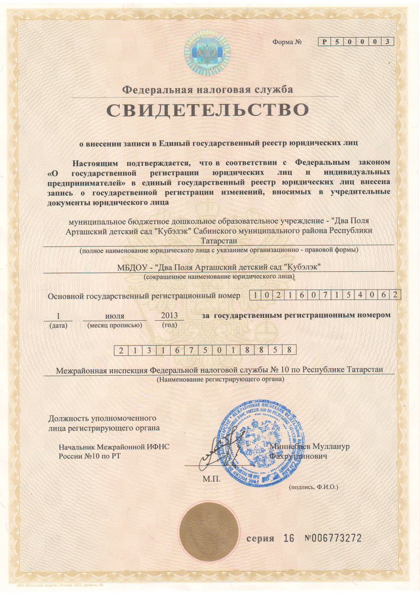 Муниципальное бюджетное дошкольное образовательное учреждение «Два Поля Арташский детский сад «Кубэлэк» Сабинского муниципального района Республики Татарстан»