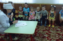 Балалар бакчасында авыл фельдшеры Гасимуллина Гөлназ даими тикшерүләр алып бара. Менә бүген дә ул мантудан соң балаларның сәламәтлекләрен тикшерә.