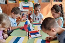 Балаларыбыз Россия флагы көне унаеннан бик тырышып флаглар ясадылар.