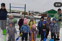 Бүген бакчабызда өмә үткәрелде,уен участогындагы,территориядәге карларны тараттык,безнең белән балаларда тырышып эшләделәр.Бергә-бергә эшләве бик күңелле булды.