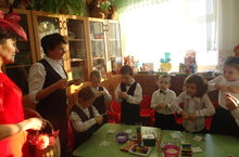 Кыш бабайга балалар үзләренең һөнәрләрен күрсәттеләр,ә әтәч белән рәхәтләнеп уйнадылар.