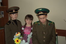 йөрүче укучылар җептән роза букеты үрделәр.