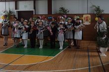 Урамда көзге, яңгырлы-җилле һава торышы хакимлек итүгә карамастан, безнең күңелләрдә кояш көлә.Укучыларыбыз кулындагы чәчәк бәйләмнәре, җәйнең якты истәлеге булып, хуш ис тарата, ап-ак алъяпкычлы, чәчләренә ак тасма үргән кызларыбыз күбәләкләрне хәтерләтә.