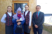Директор школы Гайбадуллин И.Б. вместе с ученицами 9 класса поздравили ветеранов, бывших сотрудников нашей школы.