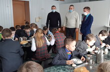Сегодня был проведен контроль соблюдения норм личной гигиены сотрудниками пищеблока, соблюдения графика работы столовой, графика дежурства учителей, качества готовой продукции и контроль за санитарным состоянием обеденного зала. Комиссия удовлетворена организацией питания в школе, нарушений не выявлено.