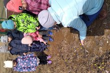Атна дәвамында балалар белән әти-әни һөнәре, аның кирәклеге турында сөйләштек, әңгәмәләр уздырдык. Шулай ук Рәсүлнең әтисе Раил Рәшитовичның эш урынына экскурсия ясадык. Раил Рәшитович Олы Кибәче урта мәктәбендә физкультура укытучысы булып эшли. Үзебезгә ашарга пешерүче Әлфия апабыз янына да кердек. Ул безгә нинди зур-зур савытларда, зур мичләрдә тәмле-тәмле ризыклар әзерләвен сөйләде.