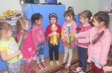 Бакчабызга кунак апалар килде 18.12.2015 18 декабрь конне бакчабызда "Аралашу олкэсендэ бурычларны тормышка ашыру алымнары" темасына тэрбиячелэр семинары узды.Семинарны модир Хабибуллина С.Н. бакча тормышы турындагы чыгышы белэн ачып жибэрде.Ике торкемдэ дэ тэрбиячелэр эшчэнлек курсэттелэр. Зурлар торкеме "Теремкэй" экиятен сэхнэлэштерделэр.Кунаклар безнен эшчэнлекне, бакчаны,балаларны ошатып, зур рэхмэтлэр эйтеп кайтып киттелэр.