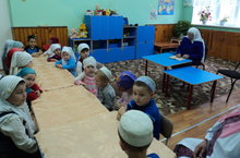 Буген безнен балалар бакчасында корбан ашы уздырылды. Махинур абыстай килеп корьэн укып ,дога кылды.