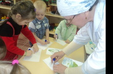 Кечкенэлэр кисеп ябыштыру эшчэнлегендэ . 04.04.2014