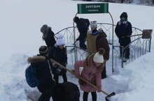 Кружковцы "Юный краевед" очистили территорию родника "Зиятдин" от снега