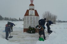 Яшь армиячеләр "Обелискка юл" акциясендә актив катнашып, Олы Кибәче авылындагы һәйкәл-обелисклар территориясендәге карны көрәделәр..