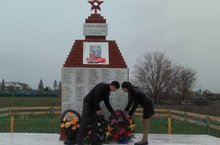 Олы Кибәче авылында сугыштан исән-сау кайтып, сугыш җимерекләрен торгызуда көчен кызганмаган, сугыштан соңгы авыр еллар хәсрәтен үз җилкәләрендә күтәргән, бүгенге көндә вафат булган 109 авылдашыбыз хөрмәтенә һәйкәл-обелиск куелган. Бүген бу һәйкәлгә дә веноклар салынды. Укучылар сугыш һәм тыл ветераннарын искә алдылар.