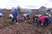 Балалар һәм укытучылар белән берлектә бакчабыздан бәрәңге уңышы жыеп алынды.