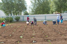 Мәктәп яны бакчасында һәр көн эш җитәрлек. Бүген укучыларыбыз техник хезмәткәрләр белән бергә кәбестә кәлшәләре утырттылар.