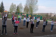 Бөек Җиңүнең 70 еллыгына багышланган митингка мәктәбебезнең 91 укучысы һәм укытучылар коллективы авыл урамы буйлап патриотик җырлар җырлап үттек. Балалар үзләренең сугышта үлеп калган бабаларының портретларын зур горурлык белән күтәреп бардылар.