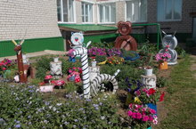 Мәктәп яны тәҗрибә участогын бизәүдә һәр класс үзеннән өлеш кертте. Бакчабызның бер почмагы чын әкият дөньясына әйләнде.